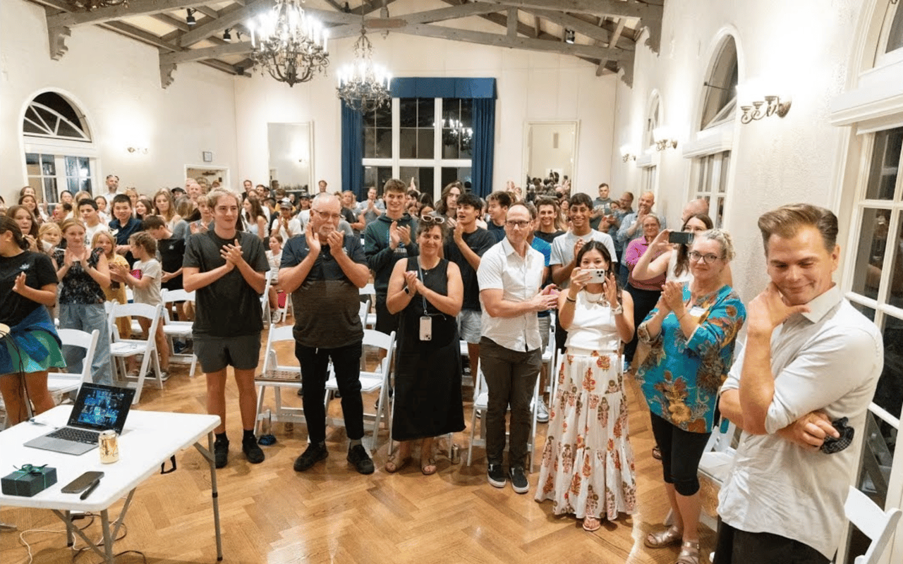 Lisa: After the heartfelt video messages, the entire room of swimmers, parents and coaches rose to their feet, overwhelmed with gratitude and appreciation for a true community treasure. Piedmont Swim Team’s head coach Stefan Bill.
